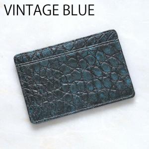 パスケース 定期入れ PASMOケース ヴィンテージ ブルー/青 クロコダイル ワニ革 本革 日本製 オリジナル