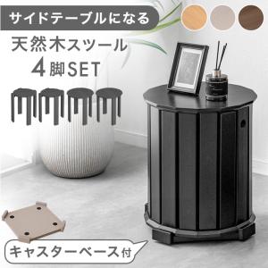 スツール サイドテーブル 4脚セット 椅子 スタッキング キャスター付 木製 ダイニングチェア土台付 リビングチェアー チェア 天然木 イス コンパクト