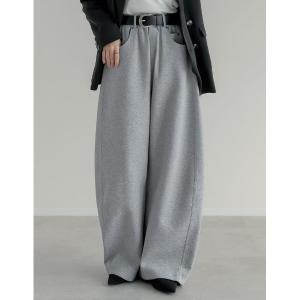 パンツ 「低身長/高身長サイズ有」リベット&ベルトループ付きダンボールボリュームスウェットワイドパンツ レディース