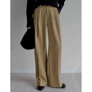 スラックス パンツ 「低身長/高身長サイズ有」タックベルトループデザインワイドパンツ レディース