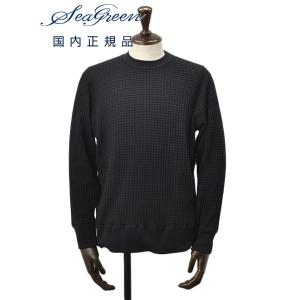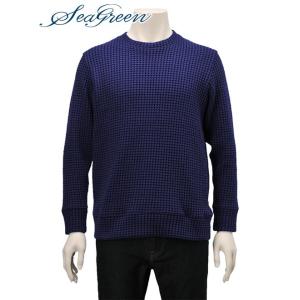 シーグリーン Seagreen 長袖トレーナー メンズ クルーネックニット ビッグワッフル編み BIG WAFFLE ブラック 黒 コットンポリ リブ装飾 国内正規品