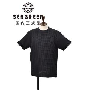 シーグリーン Seagreen 半袖Tシャツ メンズ ニットソー ビッグワッフル BIG WAFFLE ブラック 黒 コットンポリ クルーネック仕様 ワイド袖 国内正規品