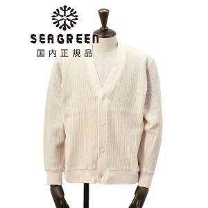 シーグリーン Seagreen ニットカーディガン メンズ Crochet Like Russel Knit アイボリー ラッセル素材 コットンリネン Vネック仕様 国内正規品