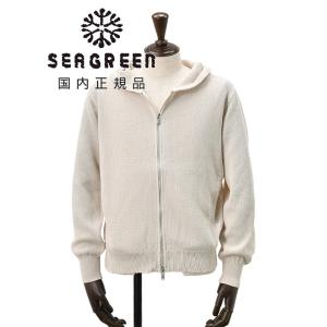 シーグリーン Seagreen ジップアップパーカー メンズ モスステッチニット MOSS STITCH 和紙混紡ポリエステル アイボリー 鹿の子編み 国内正規品