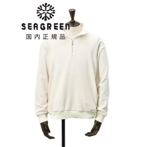 シーグリーン Seagreen ハーフジッププルオーバー メンズ スタンドネック パイル素材 アイボリー ブランドアイコン刺繍 リラックスフィット 国内正規品