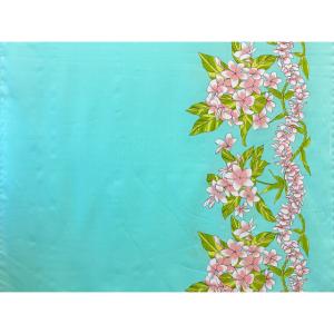 ハワイアンファブリック綿ポリ/裾柄/プルメリア/シーグリーン/LW-25-980-SEAGREEN/HFB882