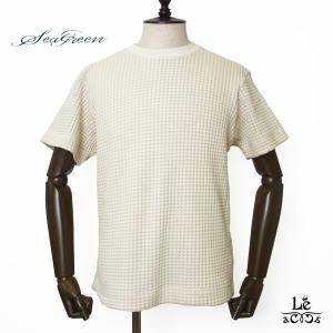 シーグリーン Seagreen 半袖Tシャツ メンズ ニットソー ビッグワッフル BIG WAFFLE クリーム ベージュ コットンポリ クルーネック仕様 ワイド袖 国内正規品