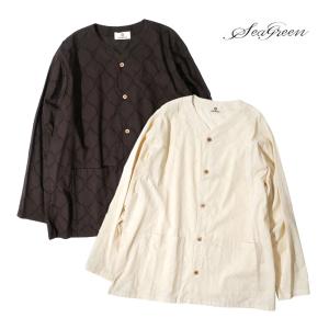Seagreen シーグリーン メンズ ジャガード クロシェ カーディガン ノーカラー シャツ