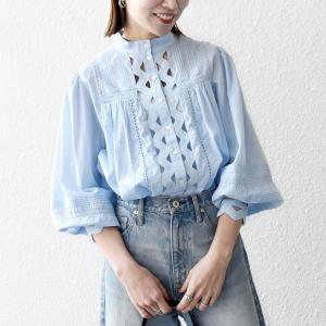 SHIPS any:〈洗濯機可能〉キャンブリック スタンドカラー レース シャツ ブラウス