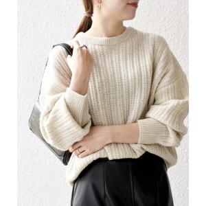 ニット セーター quaranciel:「手洗い可能」ネップツイード クルーネック コンパクト ニット レディース
