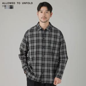 チェックシャツ シャツ メンズ 春 春服 夏 夏服 綿 ワンナップカラー イージーケア 長袖 カジュアル オンブレチェック グラデーション ALLOWED TO UNFOLD