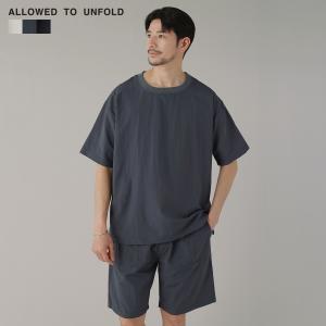 【上下2点セット巾着付き】 セットアップ 2点セット メンズ 春 夏 タスラン クルーネック 半袖Tシャツ ショーツ 巾着 ALLOWED TO UNFOLD 0702-63200