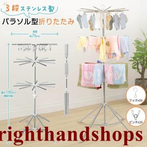 洗濯物干し 室内物干し 物干しスタンド パラソル型 折りたたみ たくさん干せる ステンレス製 3段 直径約75cm コンパクト 省スペース 高さ180cm調節可能 四本足