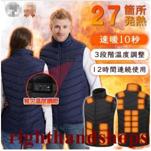 電熱ベスト 日本製ヒーター 27箇所発熱 USB式給電 洗える ワークマン ベスト 速暖 繊維ヒーター 前後独立温度設定可能 暖房服 加熱ベスト 男女兼用 防寒対策