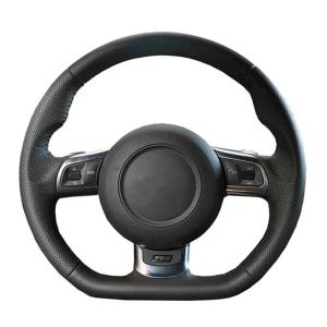 【並行輸入品】SKITTO ブラックレザーハンドソーイングカーステアリングホイールカバー、アウディA3 8VスポーツバックA4 B8アバントA5