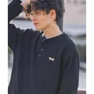 tシャツ PENNEYS/ぺニーズ 別注 THE FOX ロゴ ワンポイント刺繍 オーバーサイズ ヘンリーネック ショート丈 サーマル 長袖Tシャツ