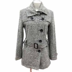 TROT ステンカラーコート ダブル ツイード 総裏地 ベルト ウール 38 M グレー /YK レディース