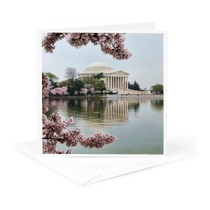 3dRose Greeting Card - Washington DC, Jefferson Memorial and Tidal Basin with Cherry Blossoms - Memorials