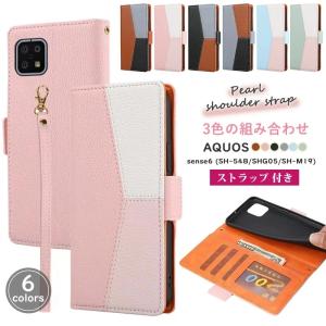 AQUOS sense6 ケース 手帳型 ストラップ付き SIMフリー Rakuten UQ mobile sense6 docomo SH-54B au SHG05 SH-M19 zero6 らくらくスマートフォン