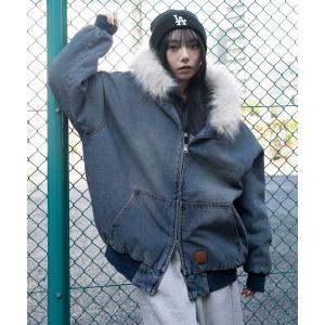 ブルゾン アウター WEGO/「25年秋冬新作」デニムキルトファーフードブルゾン レディース