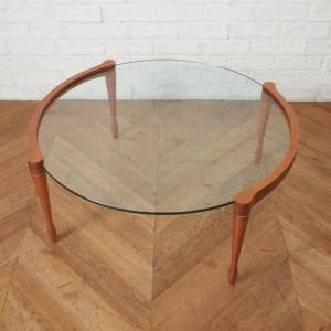 定19万 イタリア porada GIOTTO リビングテーブル ガラス チェリー 無垢材 ラウンド 丸 センターテーブル ACTUS ポラダ ジオット 97966