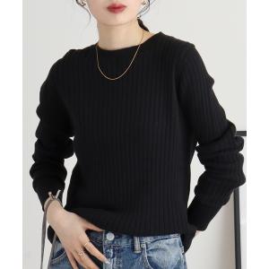 ニット セーター atONE ラウンドネックリブニット 長袖 レディース
