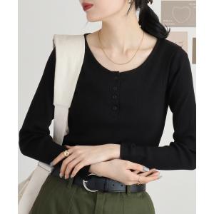 tシャツ atONE ランダムリブヘンリーネックTシャツ 長袖 レディース