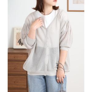 カーディガン atONE メッシュ編みVネックカーディガン レディース