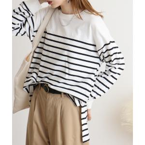 tシャツ atONE BIGボーダーロングスリーブ長袖Tシャツ レディース