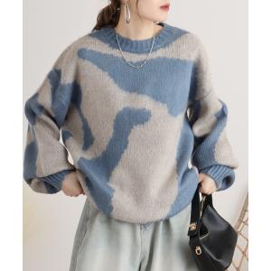 ニット セーター 5Gアクリルモヘア起毛迷彩柄プルオーバー レディース