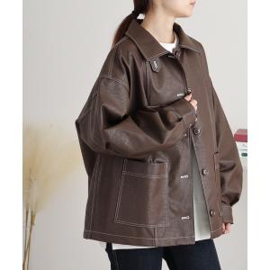 コート アウター 配色ステッチカバーオール レディース