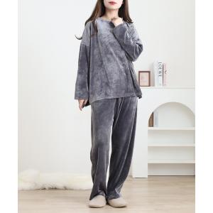 ルームウェア 部屋着 ストレッチベロア上下セット レディース