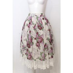 axes femme / ラフィネローズ柄タックスカート オフ×ラベンダー O-25-07-23-064-AX-SK-IG-ZT423