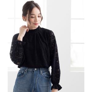 tシャツ 総レース素材シャーリング使いブラウス レディース
