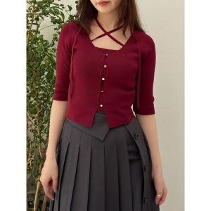ニット セーター ハーフスリーブレイヤードカーデトップス レディース