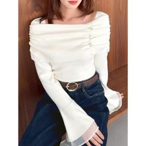 ニット セーター ワンショルミニシャギーニットトップス レディース