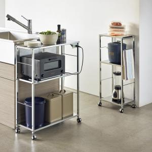 作業スペースが拡張できるステンレスキッチンワゴン 幅36.5cm キッチン収納 キッチン 収納カート H91666