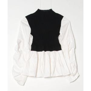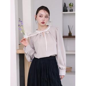 ブラウス シャツ キーネック配色リボンブラウス レディース