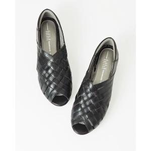 サンダル 手編みレザーオープントゥ レディース