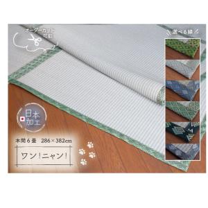 い草上敷き 畳カーペットござ 本間6畳 日本加工 286×382cm ワン!ニャン! サイズオーダー可 選べる縁