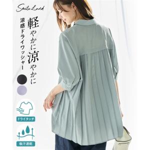 トップス 大きいサイズ 【ドライワッシャー】後プリーツシャツチュニック(吸汗速乾) ニッセン nissen