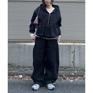 パンツ 裏起毛スウェットバレルレッグパンツ レディース