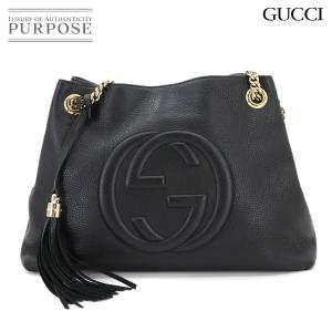 美品 グッチ GUCCI インターロッキングG ソーホー チェーン トート バッグ レザー ブラック 536196 Interlocking G Soho Bag 90298820