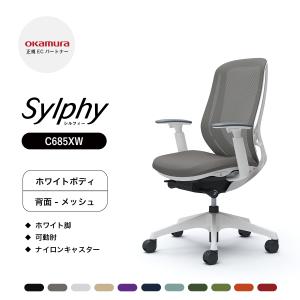 オカムラ シルフィー C685XW メッシュタイプ ハイバック 可動肘 ホワイトボディ ホワイト脚 前傾機能付 ナイロンキャスター オフィスチェア