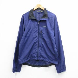 L/古着 パタゴニア patagonia 長袖 ベロシティ シェル ジャケット メンズ 90年代 90s ワンポイントロゴ リップストップ 紺 spe 26mar07