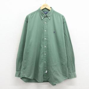 XL/古着 ラルフローレン 長袖 ブランド シャツ メンズ 90年代 90s ワンポイントロゴ 大きいサイズ ロング丈 コットン ボタンダウン 緑 spe