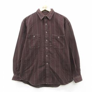 L/古着 エディーバウアー 長袖 ヘビー フランネル シャツ メンズ 90年代 90s コットン こげ茶他 ストライプ spe 26feb21