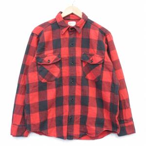 L/古着 メルトン MELTON 長袖 フランネル シャツ メンズ 80年代 80s コットン USA製 赤他 バッファロー チェック spe 26mar10
