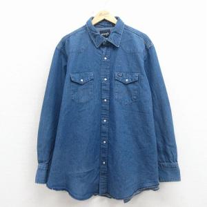 XL/古着 ラングラー 長袖 ウエスタン シャツ メンズ 大きいサイズ ロング丈 コットン 紺 デニム spe 26mar05