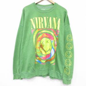 XL/古着 長袖 ロック バンド スウェット メンズ ニルバーナ ニルヴァーナ 大きいサイズ クルーネック 薄緑 spe 26feb24